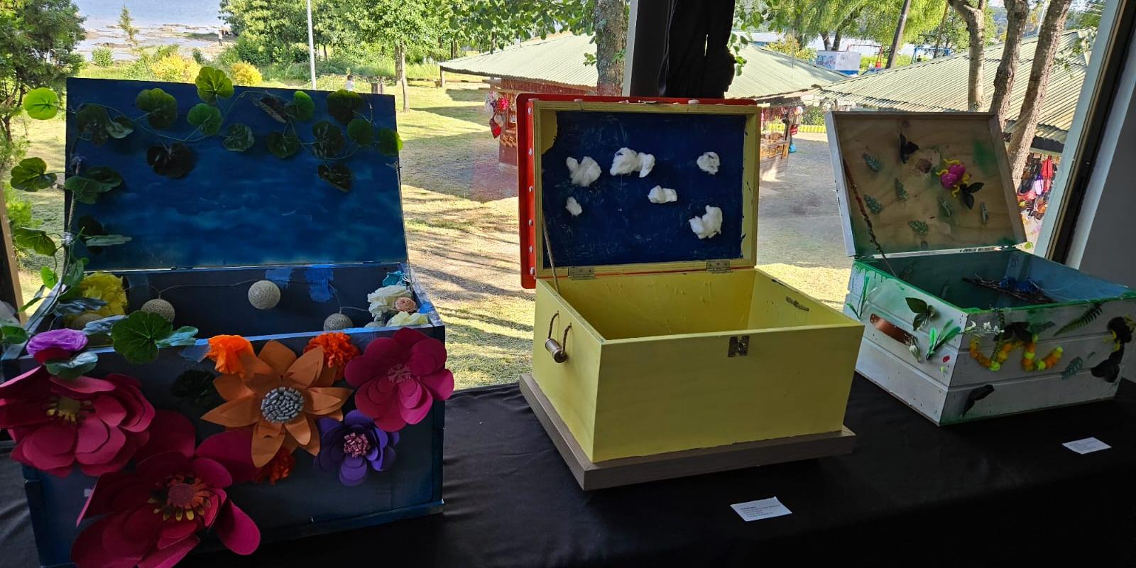 La obra colectiva de la escuela se expuso en el Centro Cultural Liquen como una forma de acercar la realidad y emociones que viven los estudiantes de esta escuela a la comunidad junto con las obras de las otras 5 escuelas de Villarrica.