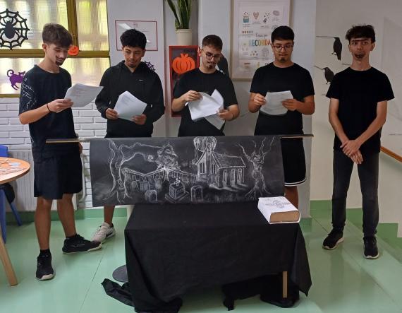 Por ejemplo, con motivo de Halloween, la profesora de Lengua y Literatura, Inma Lacal Guijarro, responsable de Literatura y Emociones, decoró el espacio con cuervos de cartulina que portaban poemas de Edgar Allan Poe realizados por alumnado de 1º y 2º de ESO.