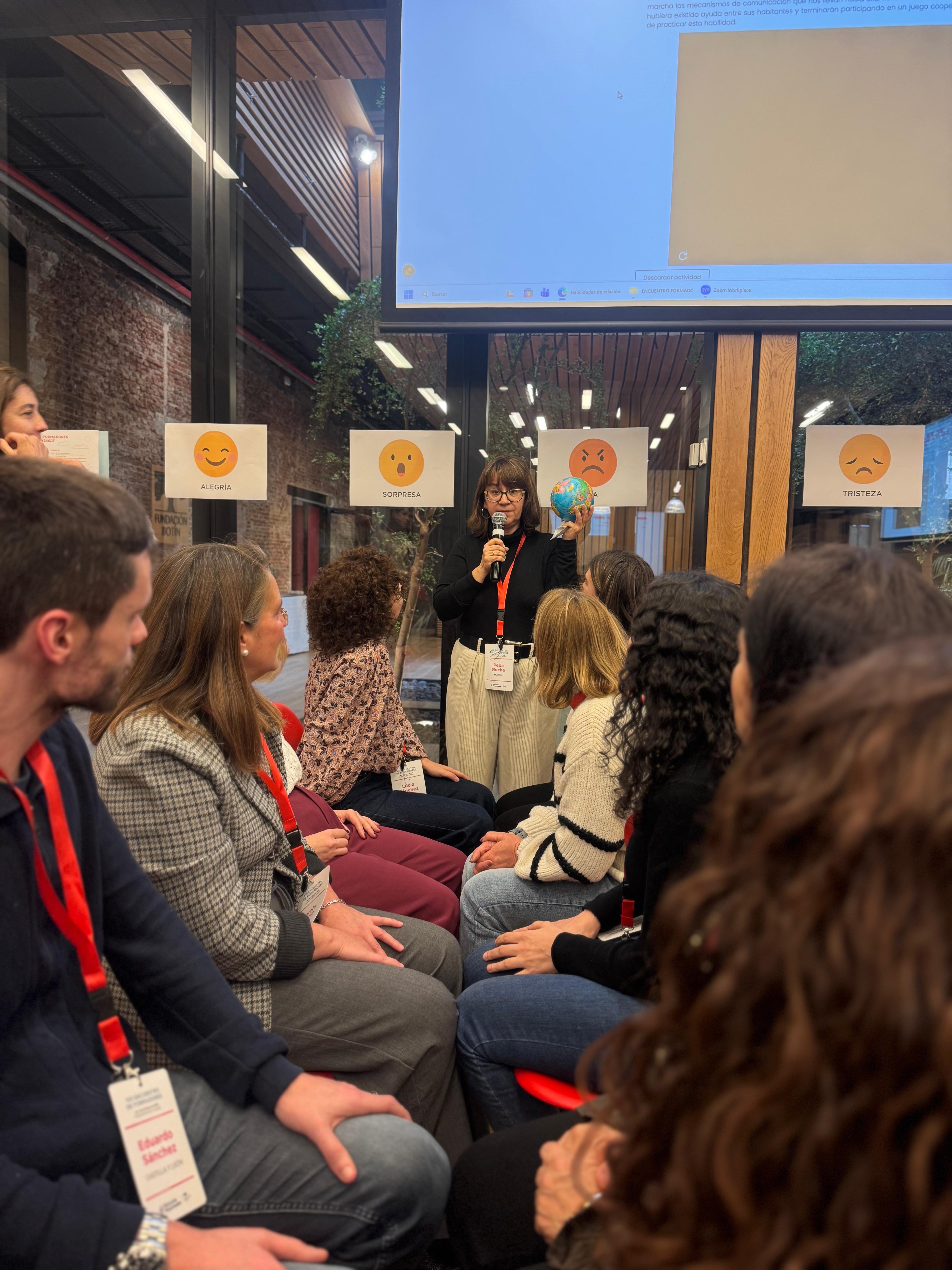 Durante dos días convertimos nuestra sede de Madrid en un gran laboratorio de ideas, emociones y creatividad, con ponentes de la talla de Luis Aranguren, filósofo y profesor de Ética, José Carlos Ruiz, filósofo y escritor, Iris Jugo, investigadora de liderazgo creativo y musical, y Bárbara Rodríguez, comisaria de arte y directora de exposiciones del Centro Botín. Nos reunimos formadores, tanto nuevos como aquellos que ya cuentan con una larga trayectoria en Educación Responsable, de distintos lugares de España (Aragón, Cantabria, Castilla y León, Galicia, Islas Baleares, Madrid y Murcia) y con impacto en los países que forman parte de la Red ER (Uruguay, Chile, México, Perú, Honduras, Nicaragua, Guatemala, El Salvador, Argentina). Todos con una misma ilusión y un mismo objetivo: seguir aprendiendo para acompañar mejor a los centros y a todo el profesorado.
